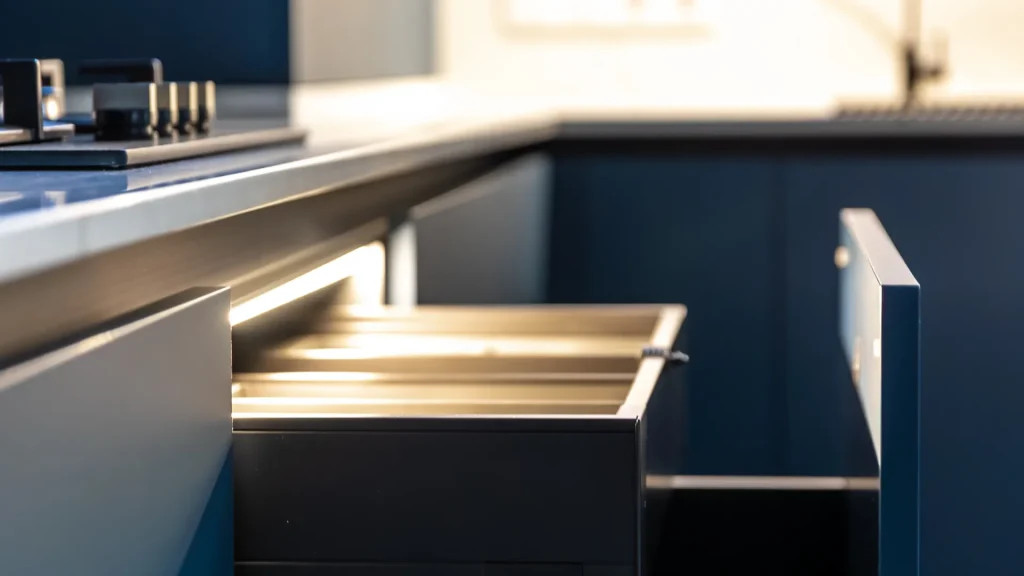- Neiznīcināma kinemātika: Blum, Hettich un Grass soft-close atvilktņu sistēmas.